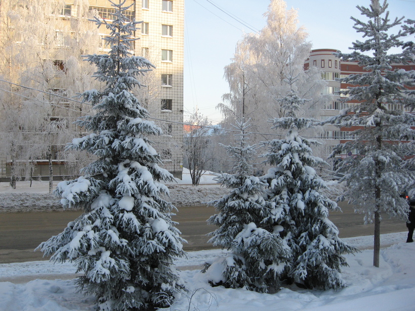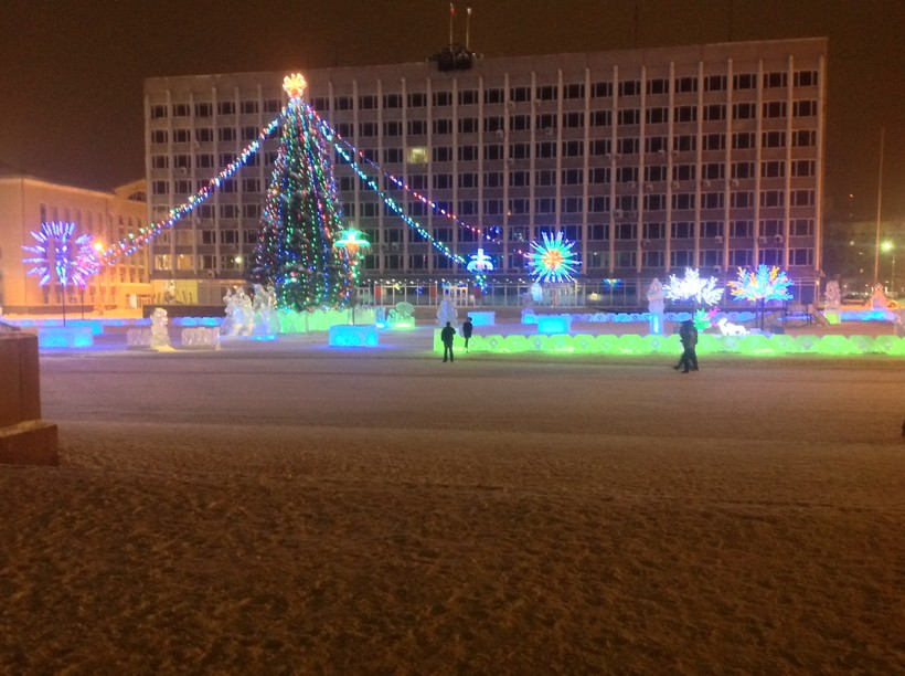 Если каким-то образом вы окажетесь в Сыктывкаре зимой, я вам не завидую. Обычно зимняя пора самая затяжная и морозная. Но наши – 30 переносятся намного легче, чем питерские – 10. Воздух не такой влажный, да и ветра в морозы редкость. Самый предпочтительный месяц для посещения, я считаю, декабрь. Потому что в это время город начинают украшать к Новому году и на Стефановской площади устанавливают ледяные фигуры и в этом году (2016) открыли бесплатный каток. А в остальные зимние месяцы (а снег здесь обычно лежит с ноября по апрель) я не вижу ничего интересного.