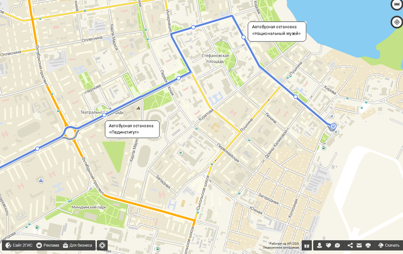 А если вам надо до ж.д. вокзала или хотите прогуляться по улице Коммунистической и увидеть театр Оперы и Балета, то на автобусе № 5 доезжайте до остановки «Пединститут» . Стоимость проезда на июнь 2017 год — 24 рубля.