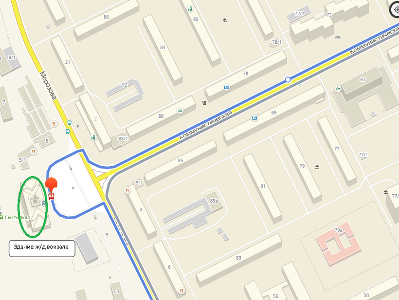 Железнодорожный вокзал в Сыктывкаре небольшой. Рядом есть магазины, кафе. Остановка автобусов № 54, 44, 46,17,5 расположена напротив здания вокзала. Стоимость проезда на 2017 год - 24 рубля.