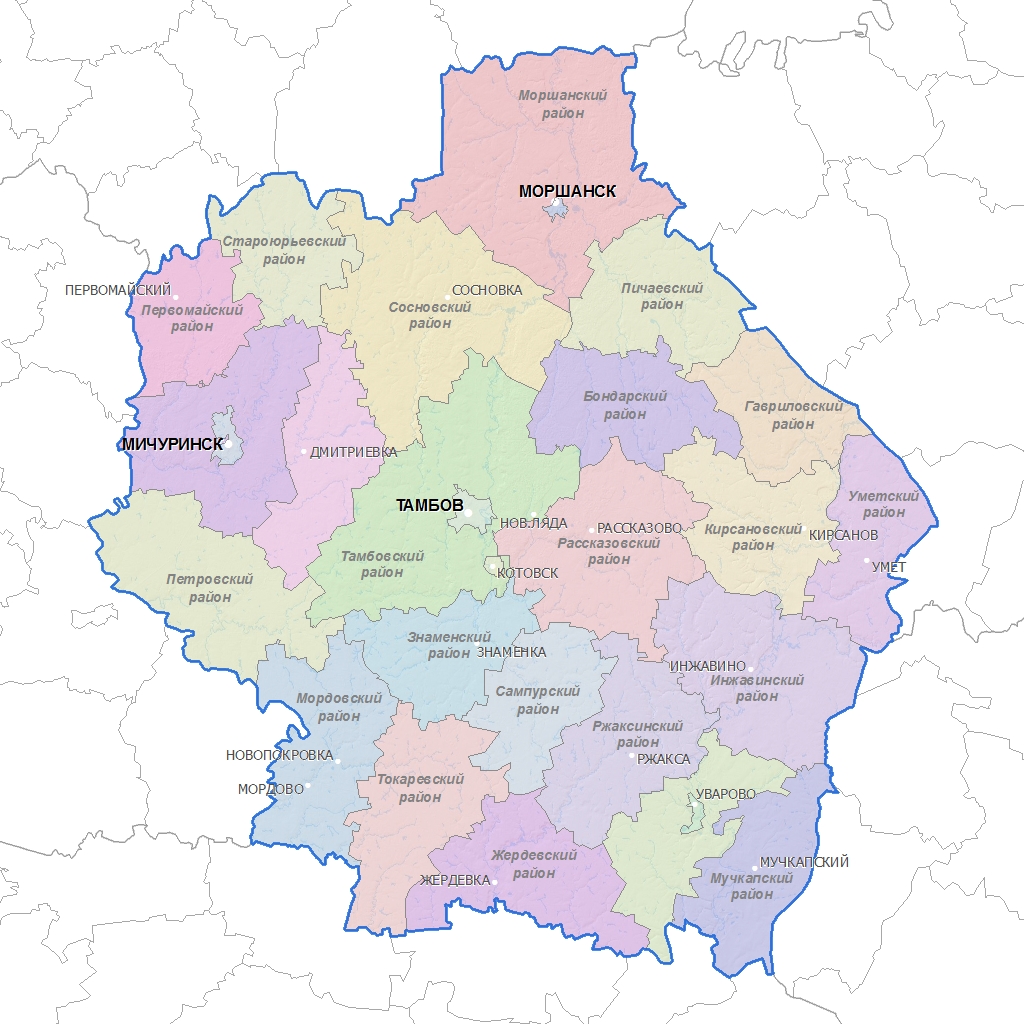 Карта районов Тамбовской области