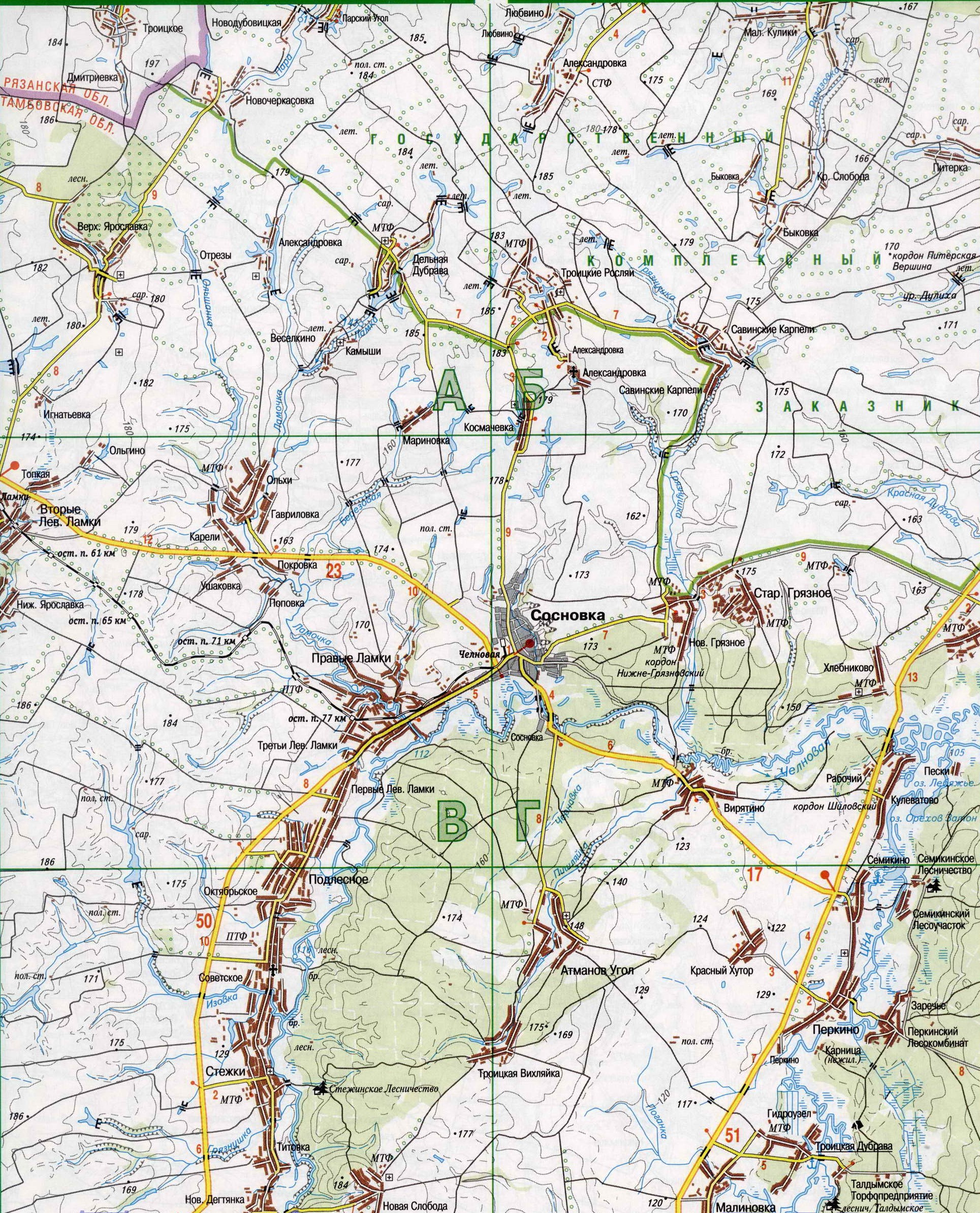 Карта Сосновского района (Тамбовская область)
