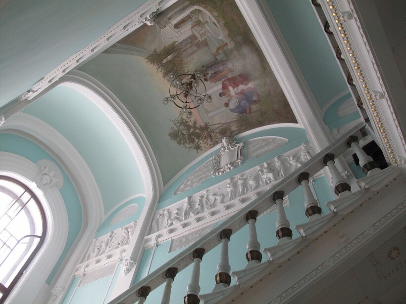При реставрации были восстановлены деревянные облицовочные панели стен и арочные входные двери вестибюлей, росписи потолочных плафонов, декоративная лепнина. Особенного труда реставраторов потребовало восстановление настенных росписей — идиллических пейзажей и групповых портретов.
