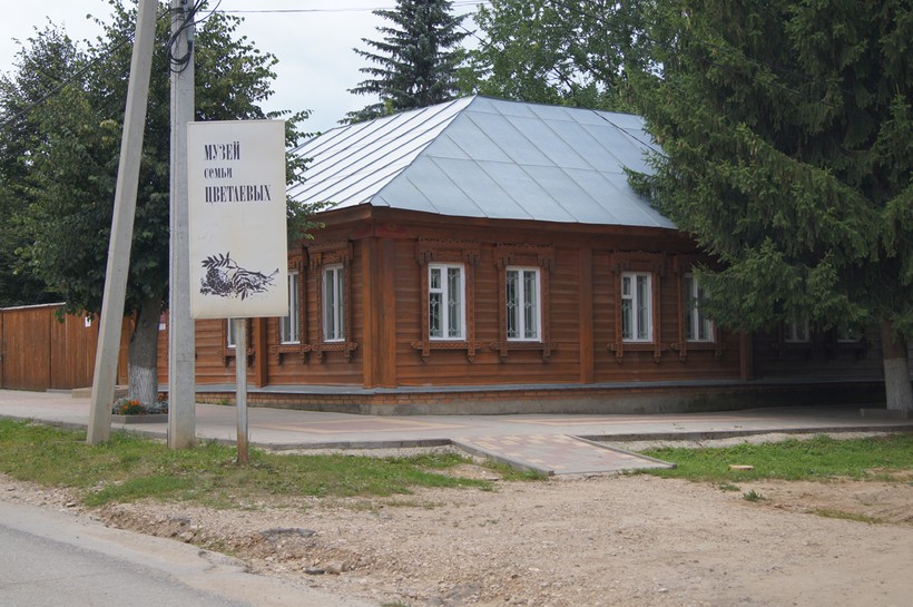 - Тарусский музей семьи Цветаевых. Он расположен в доме Тьо — семьи, у которой в гостях часто были и Марина Ивановна, и её сестра, и отец Иван Владимирович — основатель Музея изящных искусств, нынешнего Государственного музея изобразительных искусств имени Пушкина. Иван Владимирович проводил здесь больше времени, чем дочери, поэтому музей и посвящён целой семье Цветаевых, а не только Марине Ивановне. Здесь выставлены мебель из московского дома, вещи Ариадны Сергеевны Эфрон, похороненной в Тарусе. Музей работает во все дни, кроме понедельника, с 10 утра до 5 часов вечера. В последнюю пятницу месяца учреждение закрыто из-за санитарного дня. Детей сюда пускают бесплатно. Билет для льготников обойдётся в 50 рублей, для взрослых — в 70 рублей. Мне лично музей очень понравился, хотя он и небольшой.