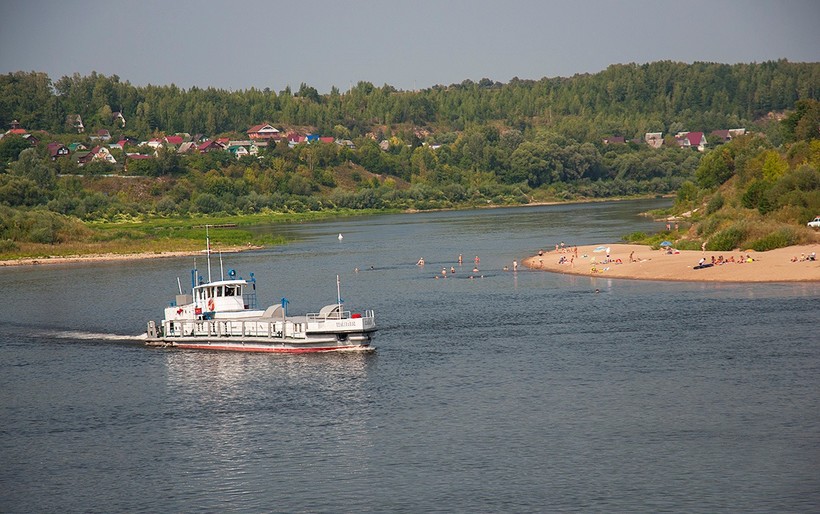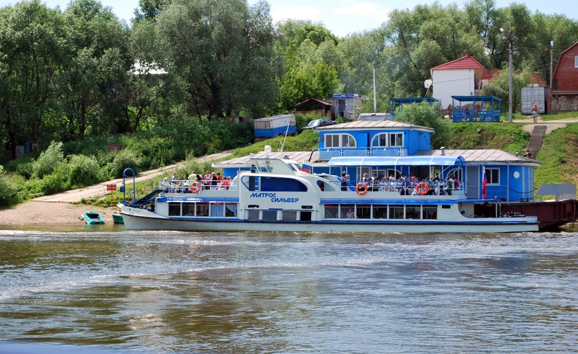 Я купалась на противоположном берегу Оки от Тарусы, заплатив 150 рублей за поездку на частном катере. Вода мне показалась холодной, поэтому плавание длилось недолго.