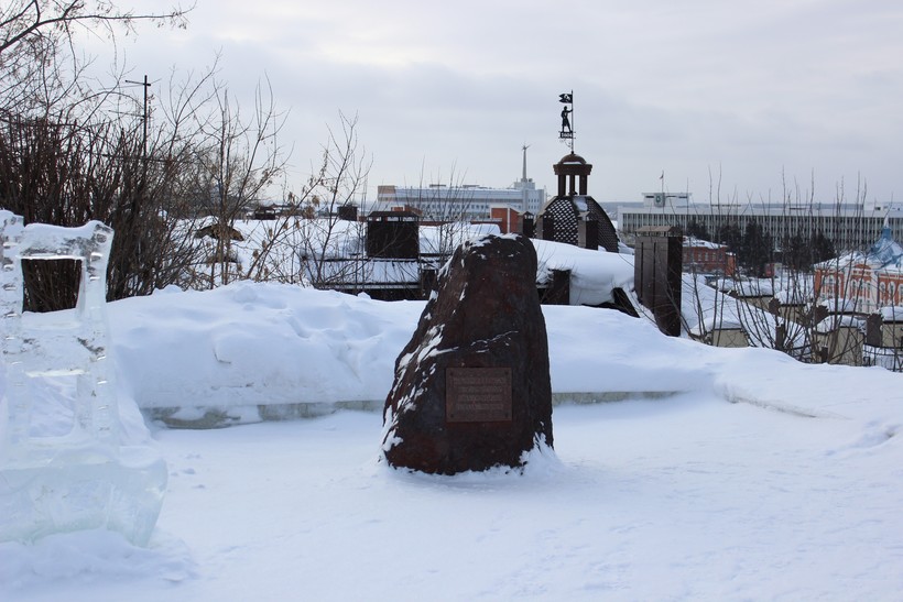 Камень находится на территории музея. На самом деле, этот камень не времен основания Томска, как могут подумать некоторые, но он тоже имеет свою историю. В прошлом веке ученые Томского политехнического университета серьезно задумались над тем, что можно разрушать камни с помощью электричества. Кстати, эта идея возникла благодаря «Медному всаднику»: легенда гласит, что камень, который является пьедесталом, был отколот от скалы молнией. Для экспериментов в Томск с Курской магнитной аномалии был завезен железняк. Один из этих валунов и установили на Воскресенской горе в 1966 году на день города в качестве символа места основания Томска. Рядом с камнем находится пушка, из которой каждую пятницу производится выстрел.