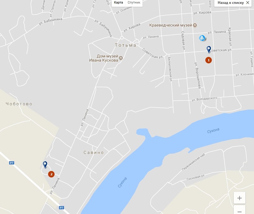 - Кафе «Сухона» на ул. Володарского, д. 6 (у администрации Тотемского р-на).