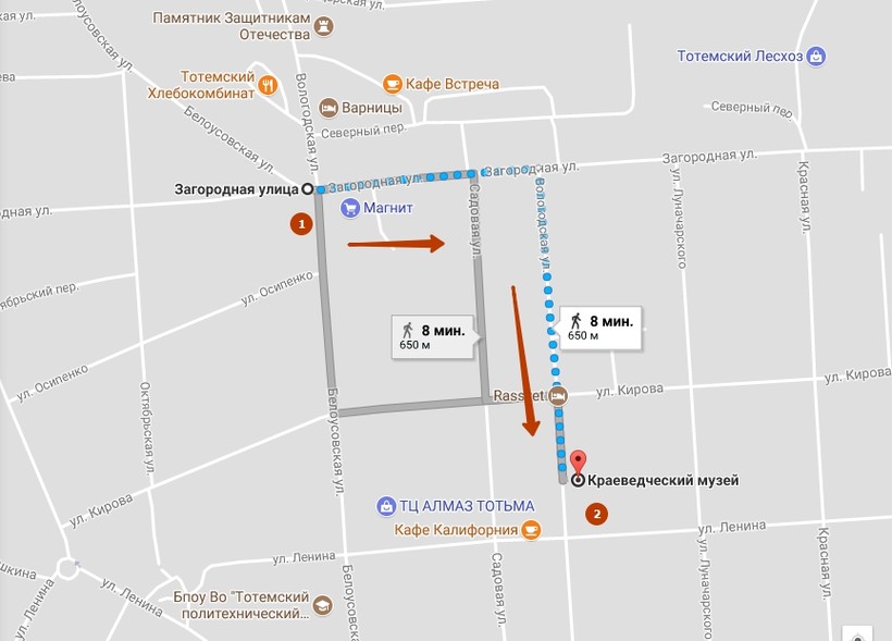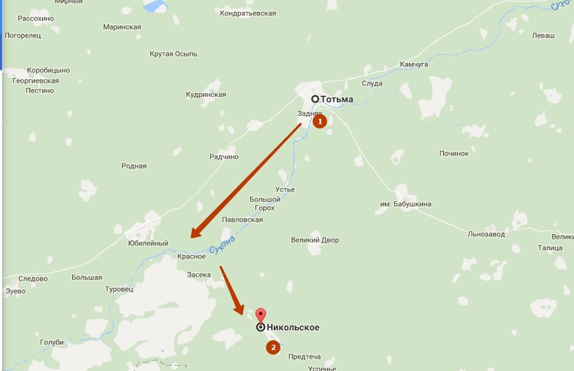 Давайте рассмотрим все возможности путей прибытия в Тотьму автобусом от Вологды, которую мы возьмем за ориентир.