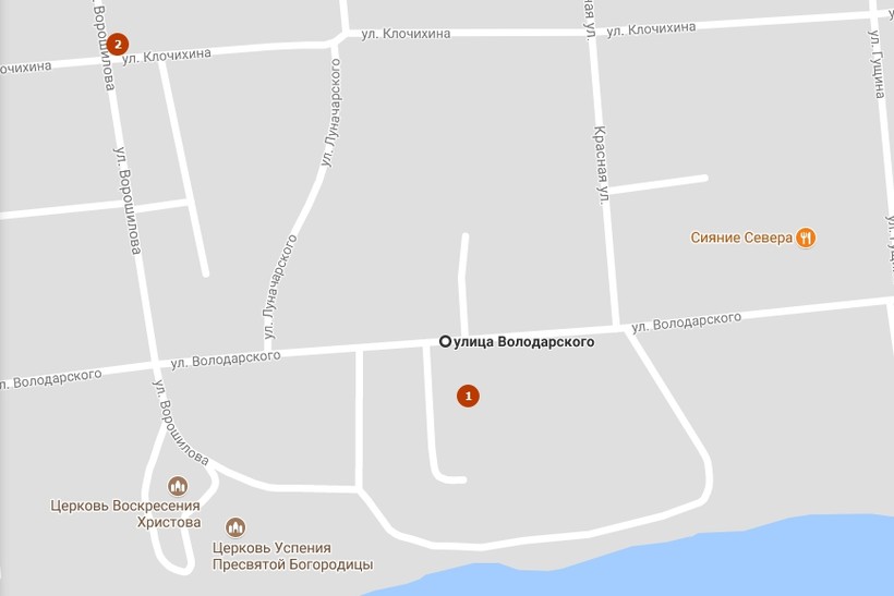 Замечу, что этот художник, воспевший в своих полотнах пейзажи природы и уникальную архитектуру Севера Руси, жил недалеко, на пересечении улочек Клочихина и Ворошилова (2). На его доме есть мемориальная доска. Адрес парка: ул.Володарского 5-7.