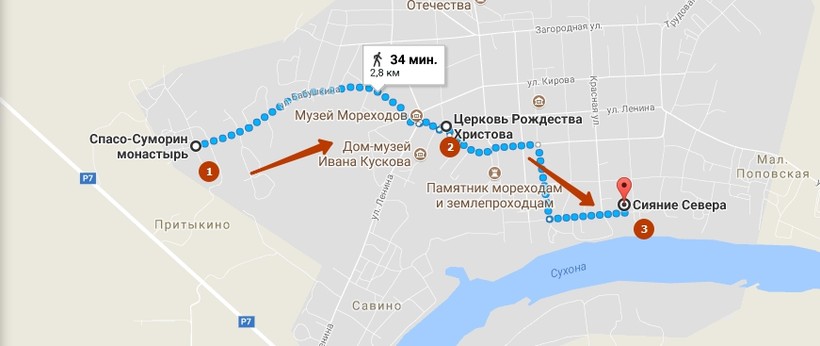 Потом продолжить знакомство с Тотьмой уже в направлении Спасо-Сумрорина монастыря (2), где мы посетим экспозицию музея Открытого хранения фондов.