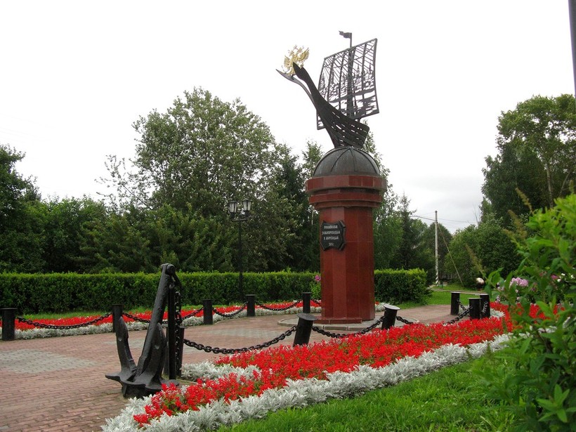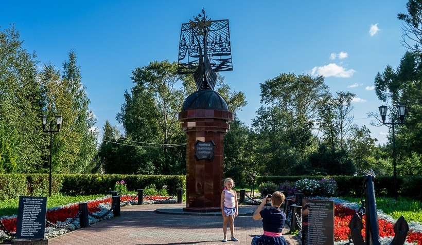- Памятник русским мореходам, землепроходцам и первооткрывателям новых земель (архитектор Виктор Михайлов). Его вы увидите на главной Торговой площади городка в сквере мореходов.