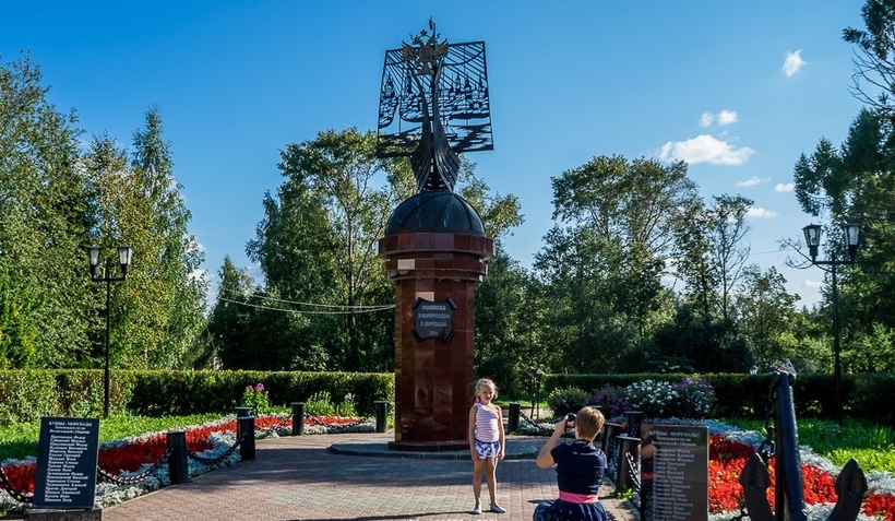 Памятник русским мореходам, землепроходцам и первооткрывателям новых земель (архитектор Виктор Михайлов). Его вы увидите на главной Торговой площади городка в сквере мореходов. Оказывается, этот символ исторического прошлого Тотьмы было решено воздвигнуть в 2001 году. Даже известный режиссер Никита Михалков принимал участие в закладке камня, на котором значилось: «Здесь быть памятнику российским землепроходцам и мореходам». Сам монумент увидел свет в 2005 году. Эта молодая достопримечательность уже стала одним из символов современной Тотьмы.