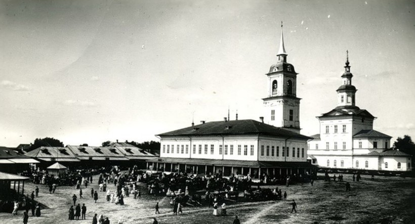 Тут с XVIII века проходили ярмарки, стояли купеческие лавки.