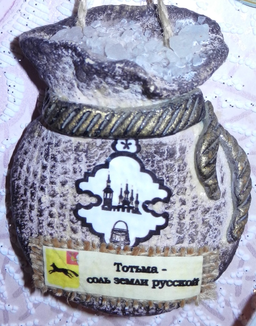 Сувениры: Популярен «Мешочек с солью», магнитики в виде ,тотемских картушей, изделия из дерева (например, милые лисички, что украшают герб города).