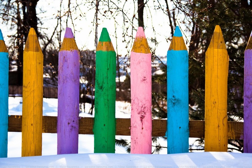 А вообще детям будет очень интересно просто погулять с вами по Тотьме, посмотреть на милые деревянные домики, встретить и такой вот веселый забор.