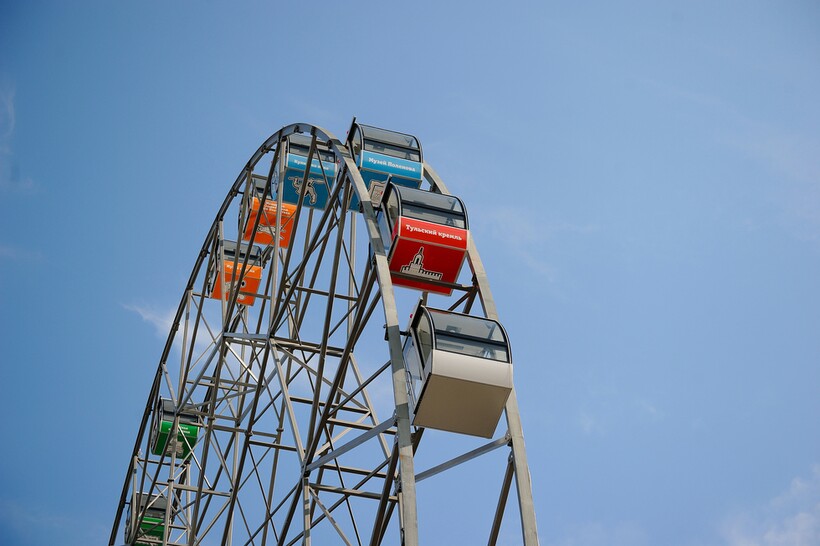 Катание с ветерком в кабинке без ограждений и высота тульского колеса обозрения надолго запомнится любителям экстремального отдыха.