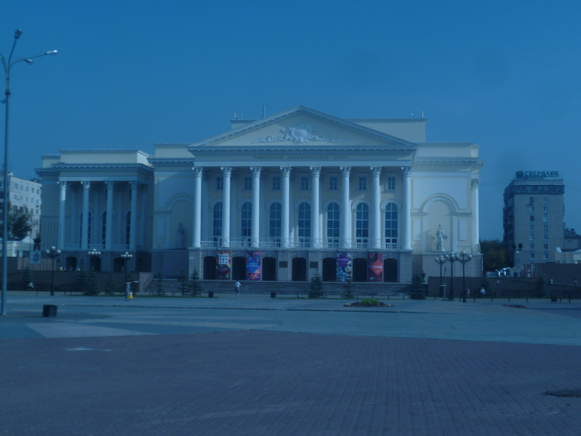В то время здесь располагался кинотеатр «Юбилейный», но не так давно он был полностью снесен в виду загубившей здание реконструкции, теперь на этом месте находится парковка. Зато площадь ныне украшает великолепное здание современного Драмтеатра.