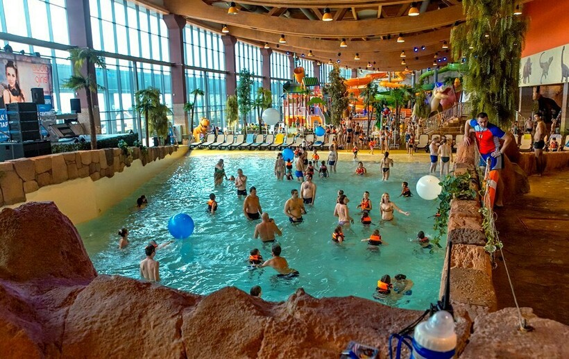 Увлекательное купание в морском прибое имитирует волновой бассейн. В мелком детском бассейне для малышей установлены фигуры динозавров, водные пушки, невысокие горки. После купания и горок ребенок с удовольствием перекусит дино-супом или бургерами в детском кафе «Динозаврик».