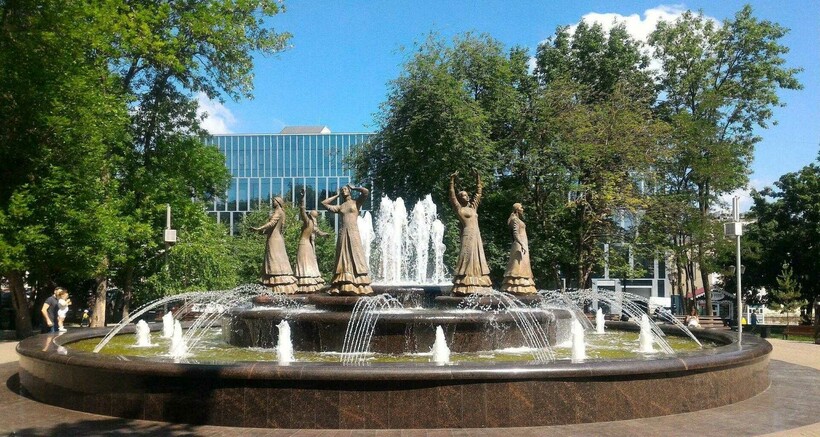 Прогуляться можно через площадь Ленина, или пойти более интересным путем, мимо знаменитого уфимского фонтана «Часы».