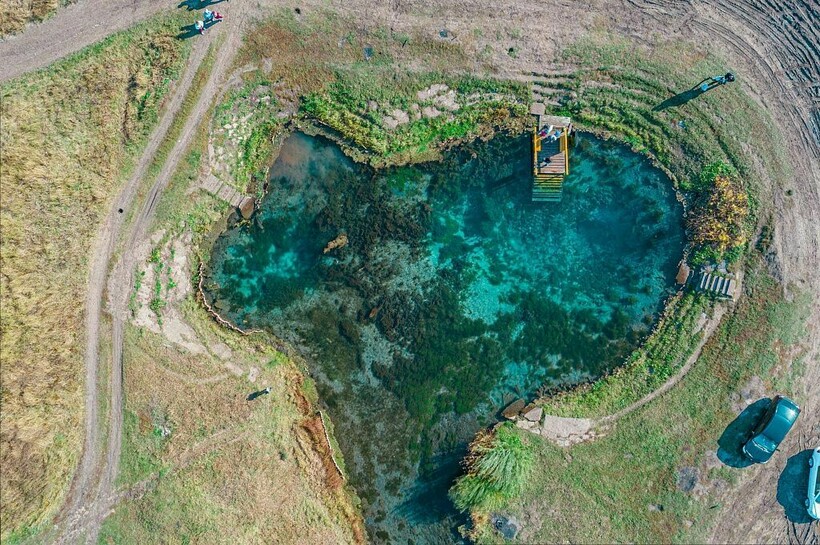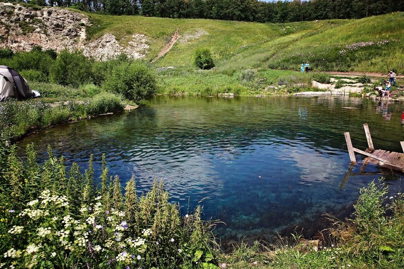 Глубина достигает 5,5 м, однако из-за прозрачности воды в солнечную погоду можно рассмотреть дно. Чистота акватории обеспечивается тем, что водоем питают 4 мощных подземных источника, ежесекундно выбрасывая до 300 кубометров воды. Согласно исследованиям дайверов, на дне есть карстовый проход, который необходимо дополнительно расчистить для дальнейшего изучения. Из водоема вытекает неглубокий ручей длиной 100 м, впадающей в реку Узень.