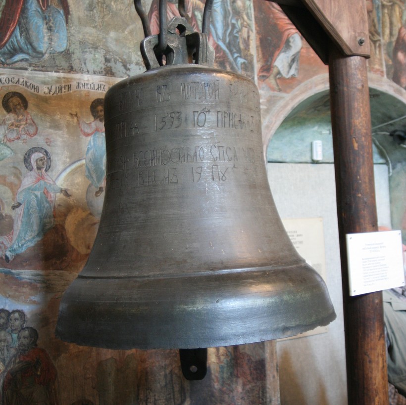 Помимо фресок XVIII века, в церкви выставлены погребальный гроб царевича, а также колокол, с которым связана весьма забавная история.