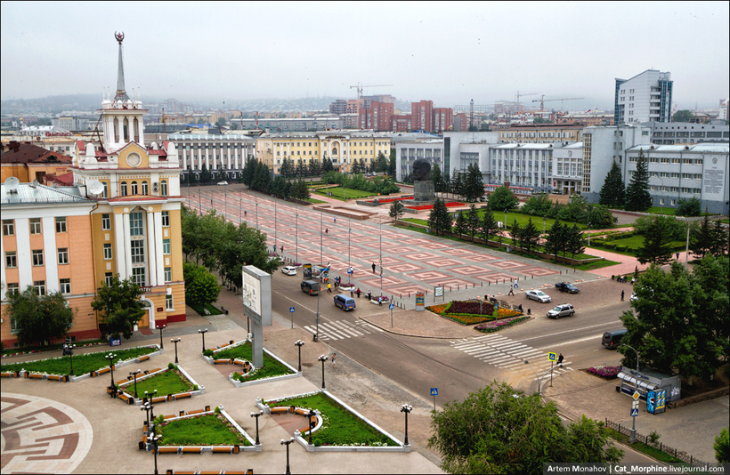 Можно вас поправить? На фото выше изображена не площадь Революции, а площадь Советов - главная площадь Улан-Удэ, где проходят парады, и разные большие мероприятия. А вот ниже на фотографии площадь Революции, рядом находятся гостиные ряды, где раньше действительно проходили ярмарки
