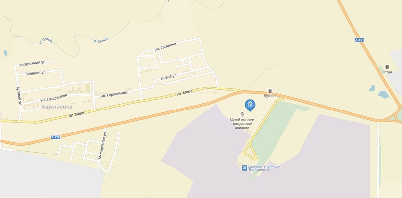 Недалеко от аэропорта Ульяновск (Баратаевка) находится Ульяновский головной отраслевой музей истории гражданской авиации, который впечатляет количеством и красотой экспонатов. Музей представляет собой выставку авиатехники под открытым небом, экспозиция включает сверхзвуковой авиалайнер ТУ-144. Стоит посетить это место, если вам представится возможность. Добраться можно на машине, адрес музея: Приволжский округ, Ульяновская область, г. Ульяновск, с. Баратаевка, Р-178.