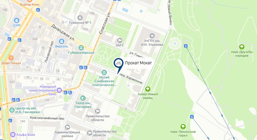 Аренда электросамокатов в Ульяновске от данного сервиса доступна только в одном стационарном пункте проката, расположенном по адресу переулок Карамзина, 4 (центр города). Для катания компания «Мокат» предлагает также скутеры Segway Ninebot.