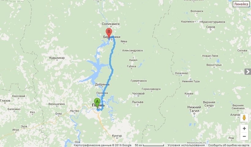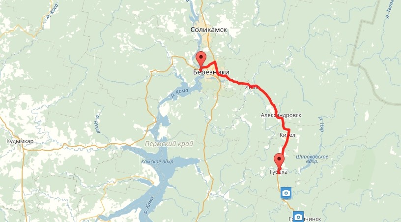 Это самый удобный и привычный мне способ. Автомобильные маршруты из Москвы и Санкт-Петербурга пролегают через краевую столицу – Пермь – без заезда в сам город, а дальше уже до Усолья. Подробнее о дороге до Перми уже рассказано здесь, поэтому повторяться не буду. Расстояние же от Перми до Усолья примерно 200 км. Соответственно, в дороге надо провести еще в среднем 3 с половиной часа. Дорога будет проходить по трассе Р343 через Березники.