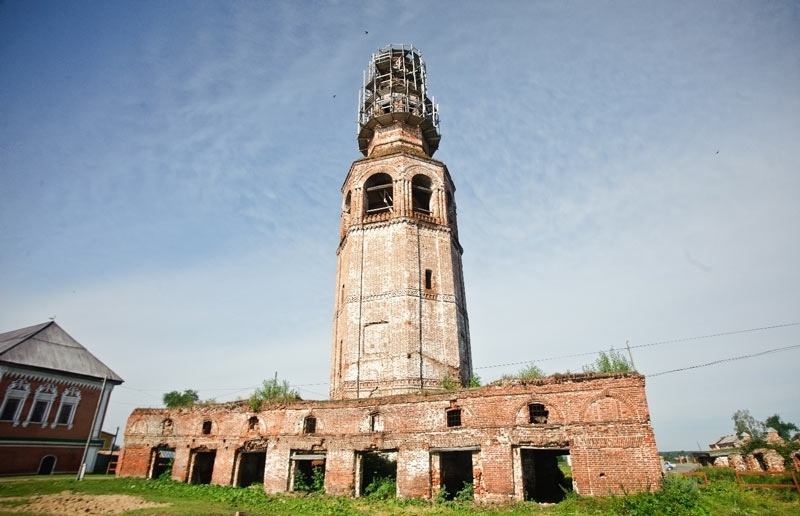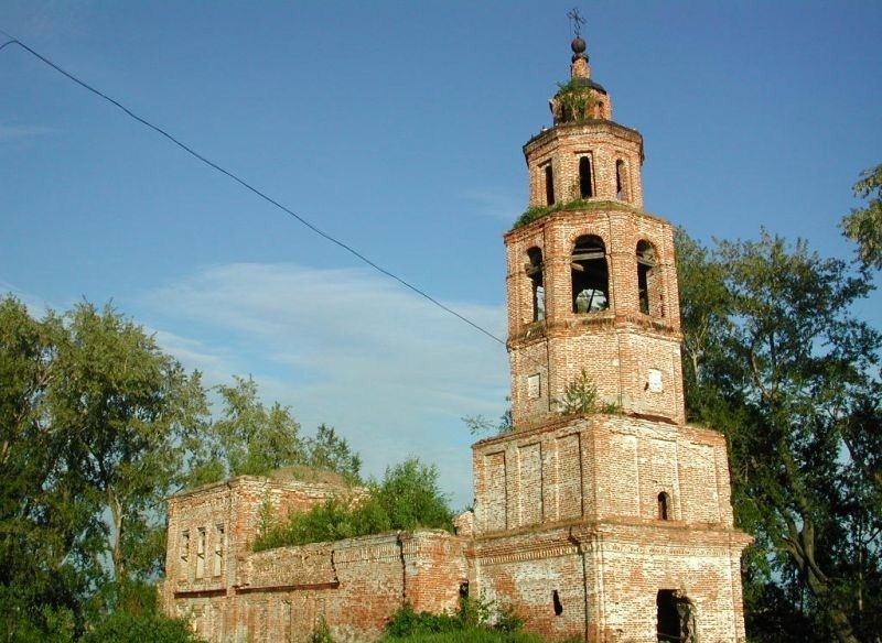 Эта церковь построена на месте сгоревшего деревянного прихода. Имеет статус памятника, но ее реставрацией никто никогда не занимался. Если очень хорошо приглядеться, то можно даже найти на стенах остатки росписей XVIII века.