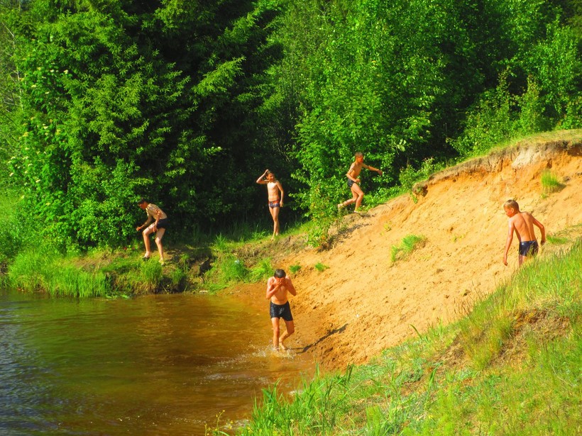 Есть, конечно, официальные пляжи, но их не всегда можно назвать комфортными и благоустроенными. Часто берега оборудованы помостами, с которых можно нырять. А на берегу максимум есть место, чтобы посидеть и выбросить мусор. Дно реки, чаще всего либо илистое, либо каменистое. Сама я редко отваживаюсь купаться в таких местах.