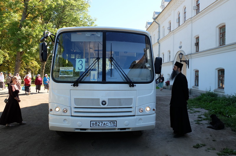 Не так давно в эксплуатацию был введен один автобус. Но он не рейсовый — то есть не курсирует между остановками, а чаще возит организованные группы. Его маршрут — главная дорога от монастыря до Большой Никоновской бухты.