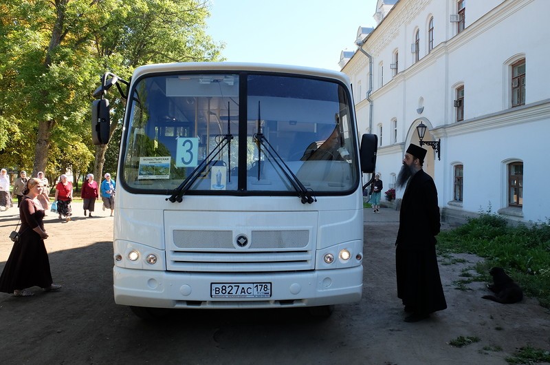 Возит людей за пожертвования (кто сколько даст). Конкретного расписания у него также нет, а найти его можно, в основном, у монастыря.