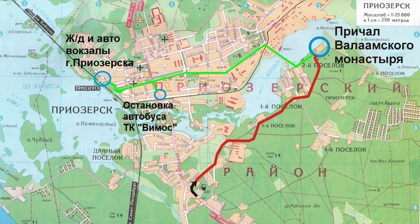 Причал Валаамского монастыря в Приозерске находится на расстоянии 6 км.
