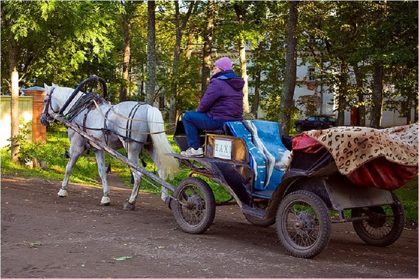 Повозки можно встретить у причалов, рядом с монастырем и на главной дороге. Стоимость в среднем 500- 800 рублей в час.
