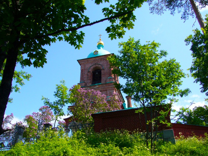 Сто лет прошло, а кирпичу хоть бы что. Вообще при первом взгляде на эти здания создается праздничное настроение, все вокруг яркое, словно языки пламени, вырывающиеся из прекрасных цветников. И бирюзовые купола как нельзя лучше оттеняют этот «небесный огонь» среди деревьев. Фестиваль красок бы позавидовал.