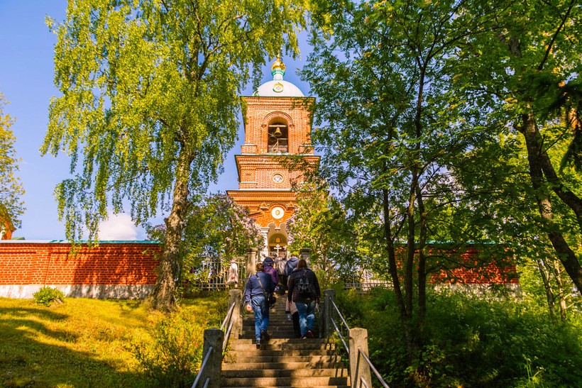 Здесь могут получиться отличные фотографии. С причала нужно немного пройти по дороге, и вы окажетесь у подножия лестницы — поднимитесь по ней, и перед вами откроется территория скита.
