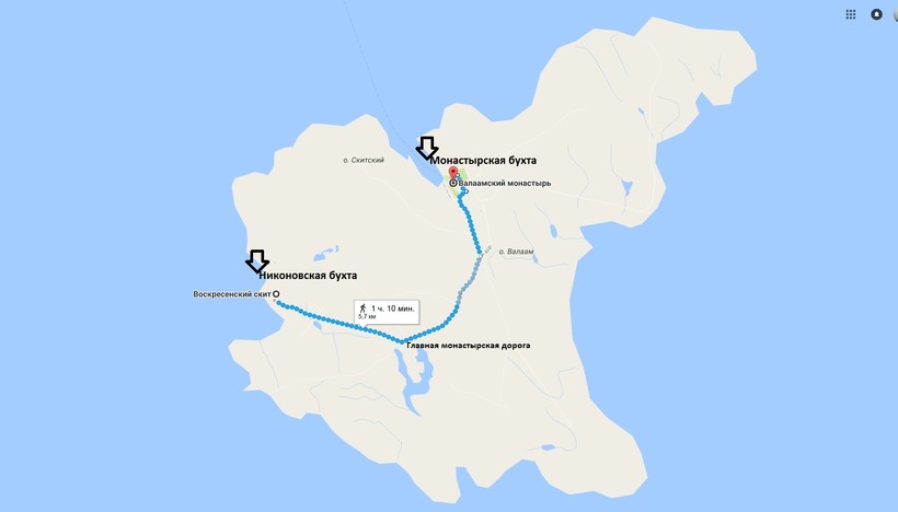 Если вы прибыли из Сортавала в Монастырскую бухту, то до Воскресенского скита будет 6 км.