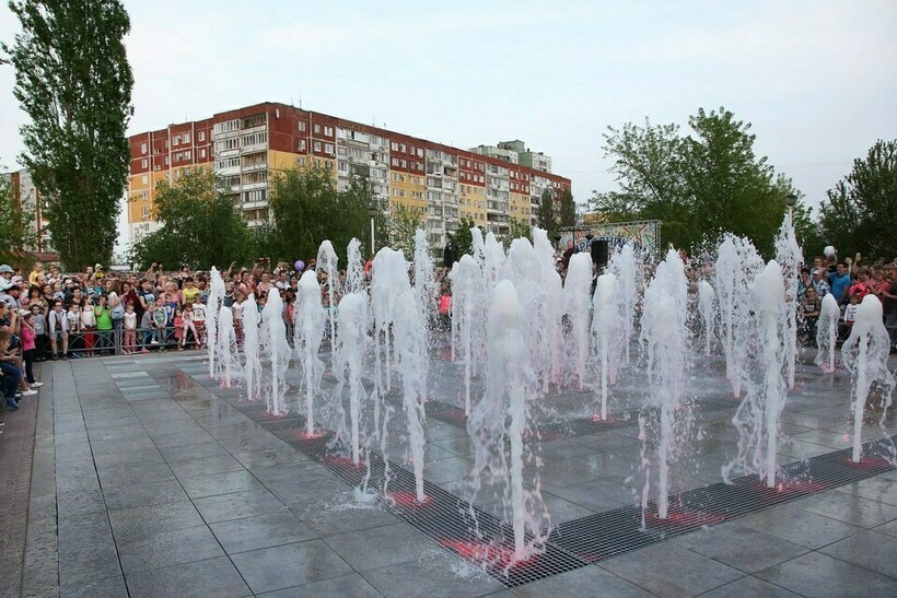 Особенность парка — необычный светодинамический, но безопасный фонтан. Детям нравится делать фотографии во время яркого шоу, к водным столбам которого можно прикоснуться.