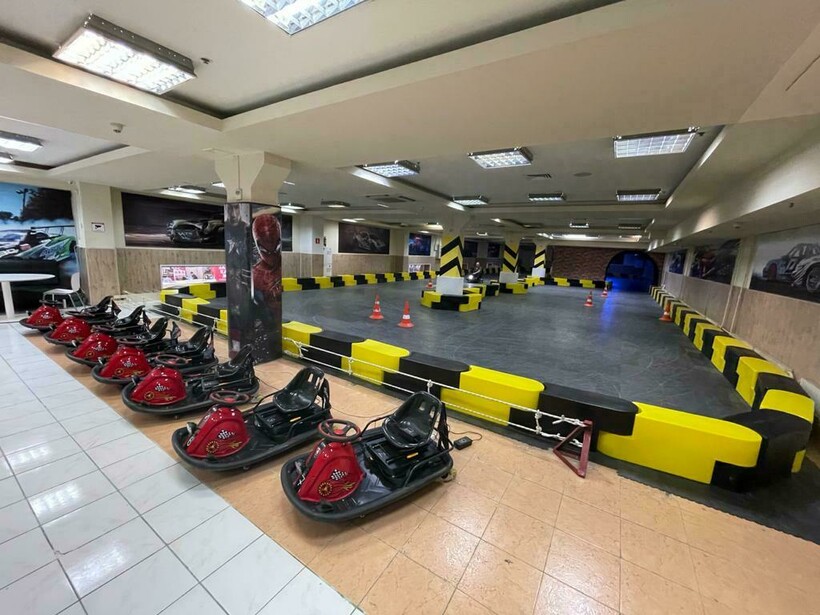 Крытый дрифт-электрокартинг Crazy Cart34. Машинки в центре по размеру меньше классических, они проще в управлении.