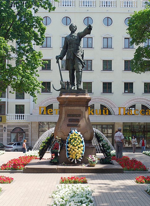 Бронзовый император установлен в Петровском сквере, то есть прямо в начале центральной части города и главной улицы — проспекта Революции. Памятник был открыт в 1860 году, однако во время ВОВ был переплавлен немцами. Восстановленный неофициальный символ Воронежа занял свое законное место в парке в 1956 году.