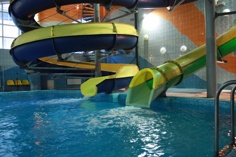 В развлекательном комплексе «Парнас» находится небольшой крытый аквапарк, на территории которого расположено несколько горок высотой до 10 метров и большой бассейн с фонтанами. В бассейне работают тренера и инструкторы, организуются занятия с детьми, пока родители отдыхают.