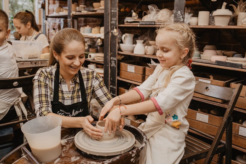 В мастерской каждый сможет прикоснуться к древнему гончарному искусству в непринужденной домашней атмосфере. Посетители могут выбрать один из многочисленных мастер-классов, исходя из возраста ребенка: