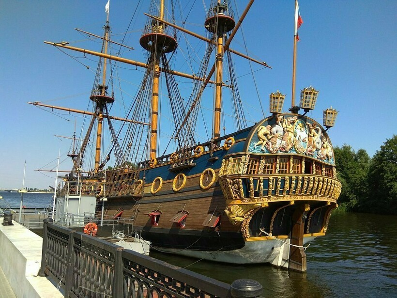 Корабль представляет собой воссозданную по чертежам копию первого линейного корабля Российского военно-морского флота. Взрослые вместе с детьми могут подняться на борт и посмотреть тематическую экспозицию.