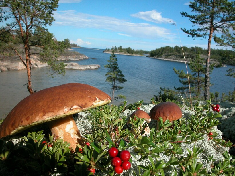 Растительность на островах разнообразна. Много ягод (земляника, морошка. брусника, малина, смородина), грибов. Для любителей тихой охоты здесь раздолье. В этом мягком климате растут даже ананасы и арбузы, их выращивают на Валааме.