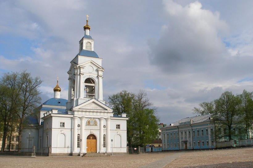 Это бывшая госпитальная церковь. В Великую Отечественную войну церковь была разобрана на стройматериалы, сейчас можно увидеть воссозданную копию храма.