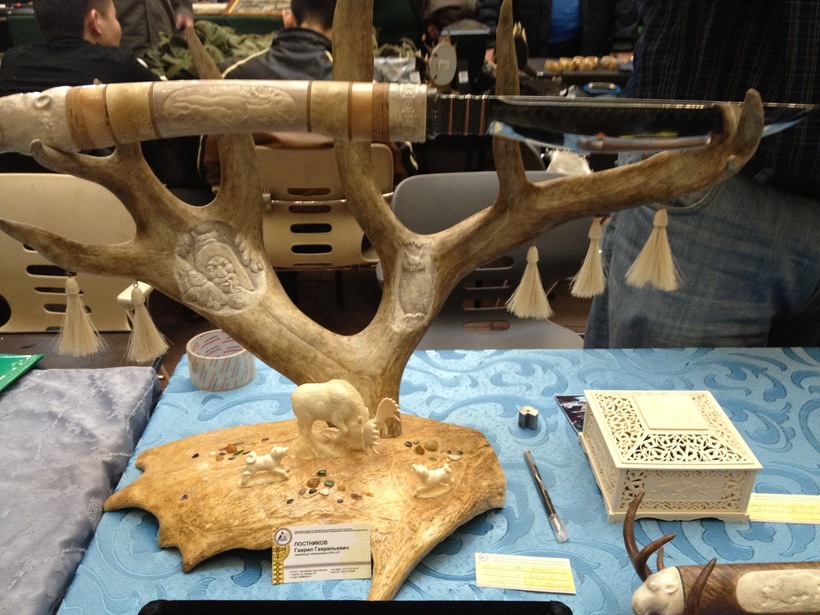 Изделия из мамонтовой кости (брелоки, статуэтки, заколки, украшения). Цена зависит от веса изделия и сложности работы. Можно приобрести недорогой брелок на кожаном ремешке за 200-300 рублей или небольшие серьги-гвоздики со вставкой из натурального камня примерно за 1,5-2 000 рублей. На все изделия выдаются сертификаты, подтверждающие оригинальность материала.