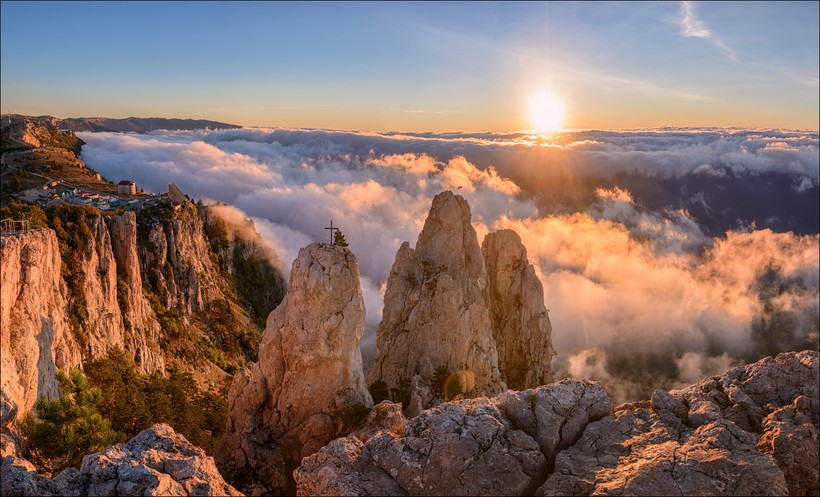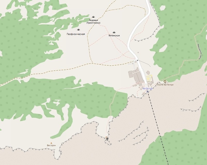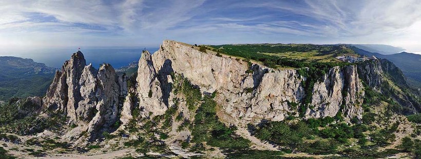 Если посмотреть прямо, на горы, когда едешь по Южнобережному шоссе от Ялты в сторону Севастополя, или оглянуться назад, когда лежишь на пляжах Ялты, то увидишь три возвышающихся скалы в форме зубцов. Это и есть вершина знаменитой Ай-Петри.