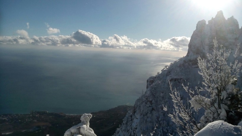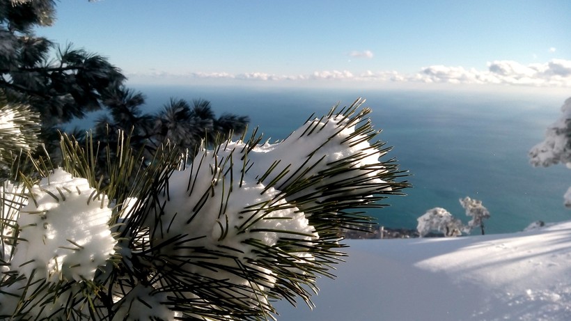 Зимой Ай-Петри еще сказочней. Белые пушистые сугробы, заиндевелые иголочки сосен, кружение снегов, искрящихся на солнце, заснеженные горные вершины. А самое главное – удивительное для северного глаза сочетание: снег и море. В хорошую видимость (когда нет тумана, высокой облачности или густой пурги) с Ай-Петри видно Большую Ялту и море. И вот это практически нереальное сочетание - белый-белый снег и лазурное море внизу. Если окажетесь в Ялте зимой, то посетить Ай-Петри определенно стоит – редко где еще можно насладиться такими нереальными видами всего в часе езды.