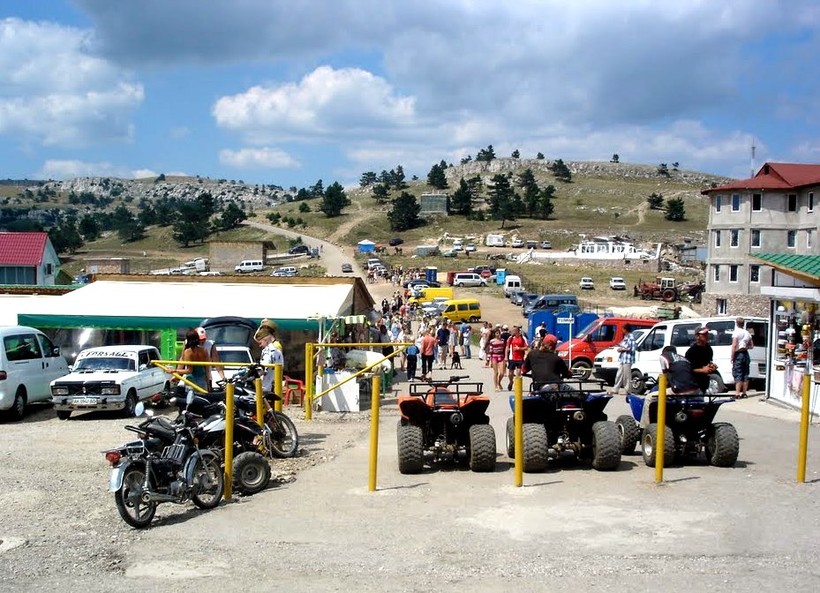 - Погулять по палаточному городку-рыночку. Рынок иногда называют татарским, потому что в основном там торгуют татары своими аутентичными лакомствами и изделиями. Но помимо редких сувениров, которые не купишь на прибрежных рынках, тут можно приобрести туры по плато на лошадях и квадроциклах, полеты на дельтаплане, занятия скалолазанием и многие другие экстремальные горные развлекухи. Это определенно стоит попробовать, оказавшись на самой знаменитой вершине Крыма.