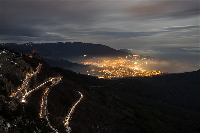 От Ялты нужно ехать по Южнобережному шоссе в сторону Севастополя, до поворота на Бахчисарай. Его не пропустить – там есть указатель на Ай-Петри, который оповещает открыта ли сегодня дорога. Эта дорога до Бахчисарая через Ай-Петринское плато. По ней и нужно ехать, осторожно вписываясь в повороты. Водители утверждают, что на один спуск-подъем они заправляются на 600-700 рублей.
